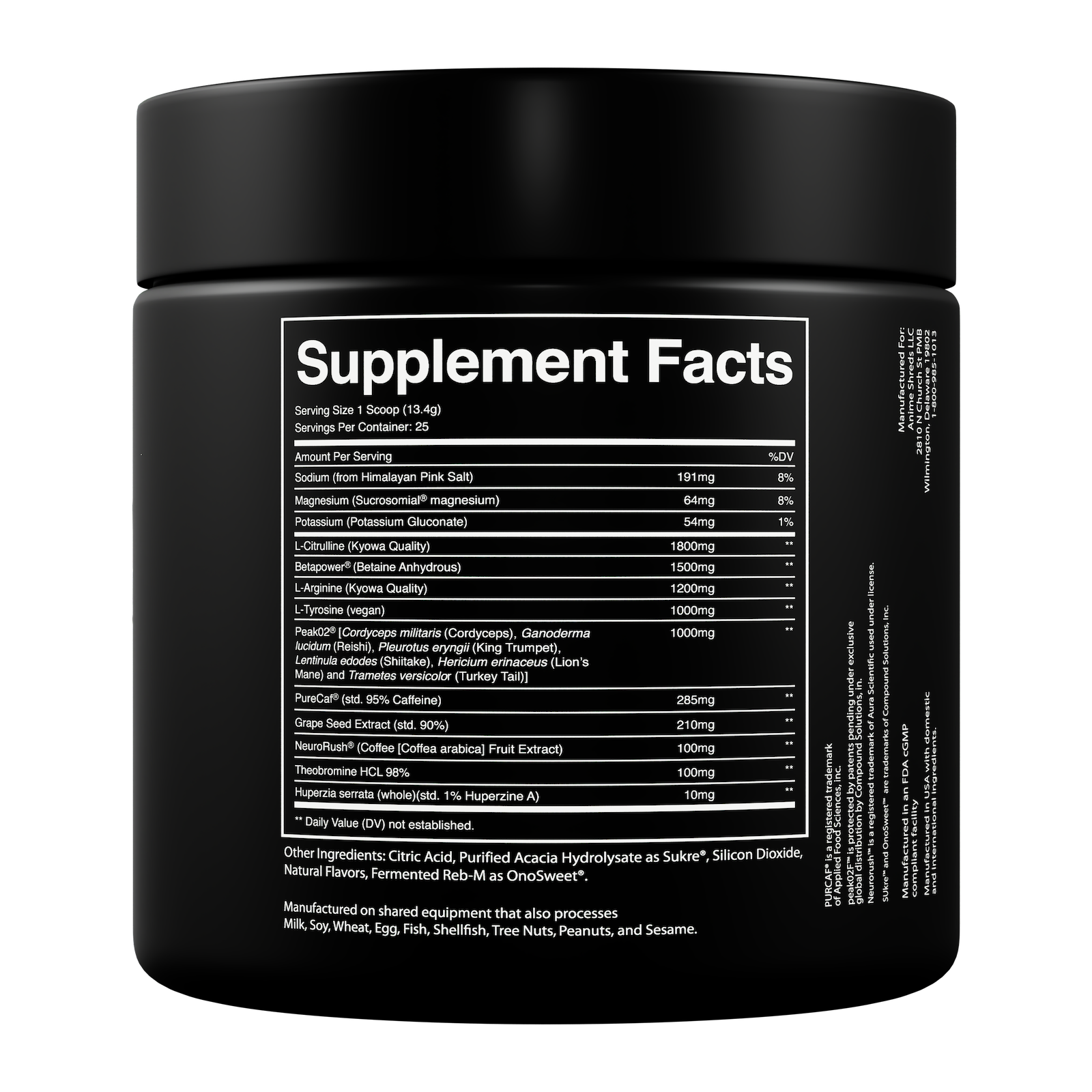 Designed to electrify your body and mind with nature’s raw power. Infused with potent electrolytes, blood-flow enhancers, cognitive boosters, and clean plant-based stimulants to deliver a surge of endurance, strength, and mental clarity without the crash. Each scoop ignites your internal current by enhancing oxygen flow, hydration, muscular power and recovery while sharpening focus like a lightning bolt through fog. You’ll feel awake, dialed-in, and fully activated—like flipping the switch from idle to unstoppable.